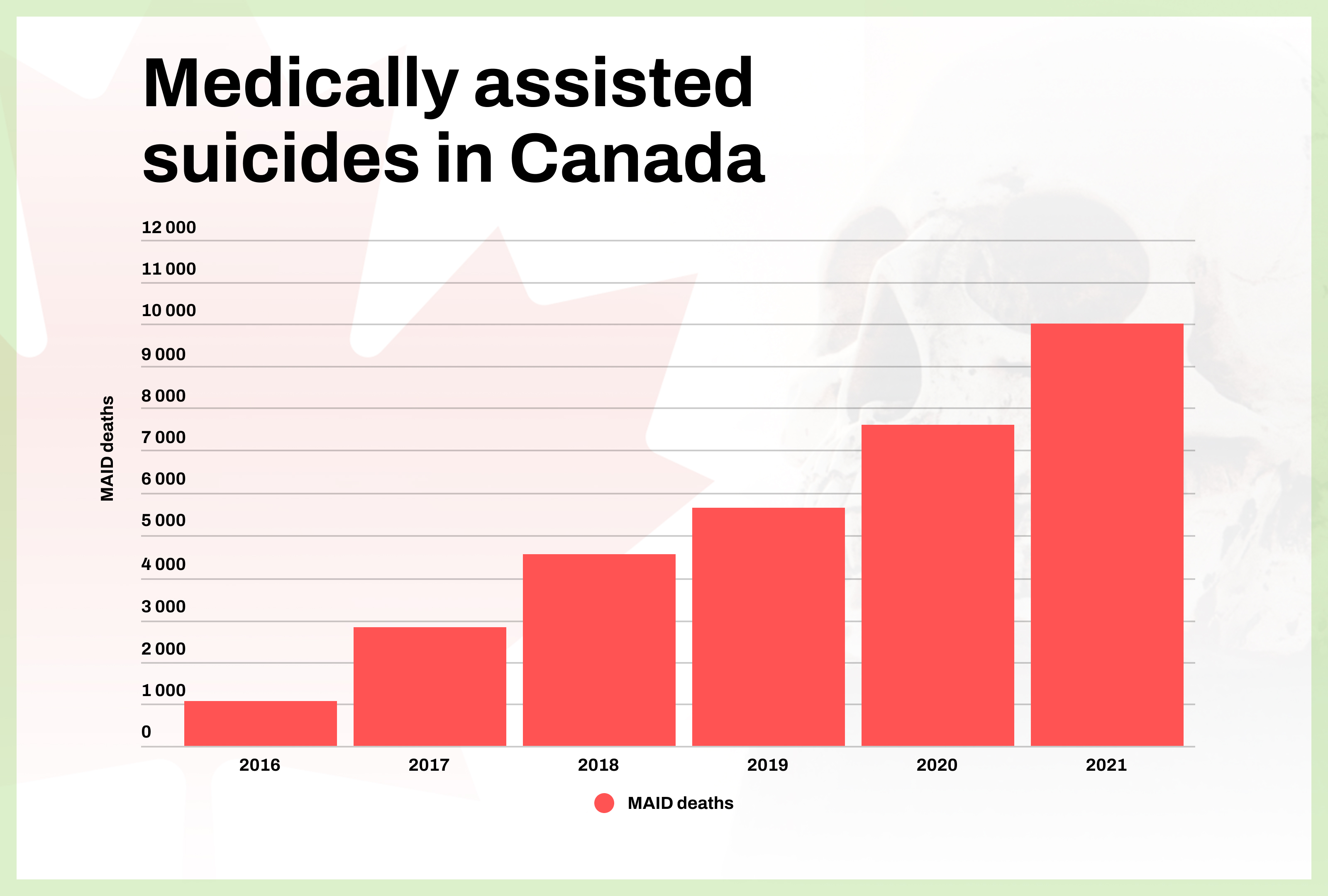 As an alternative, Canada officially launched an euthanasia program in 2016, initially limited to terminally ill patients. In 2021, the program was radically expanded: nearly all patients with disabilities or chronic, not necessarily fatal, illnesses became eligible, and the application process was simplified and accelerated.