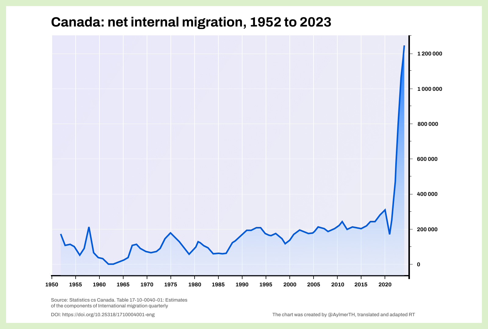 Opinion polls show unprecedented dissatisfaction and pessimism. An Ipsos survey found that 7 in 10 Canadians agree that “Canada is broken,” rising to 8 in 10 among those aged 18–34. According to an Angus Reid poll, 42% of Canadians have considered emigrating. Statistics Canada reports that current emigration is already 31% higher than the historical average.